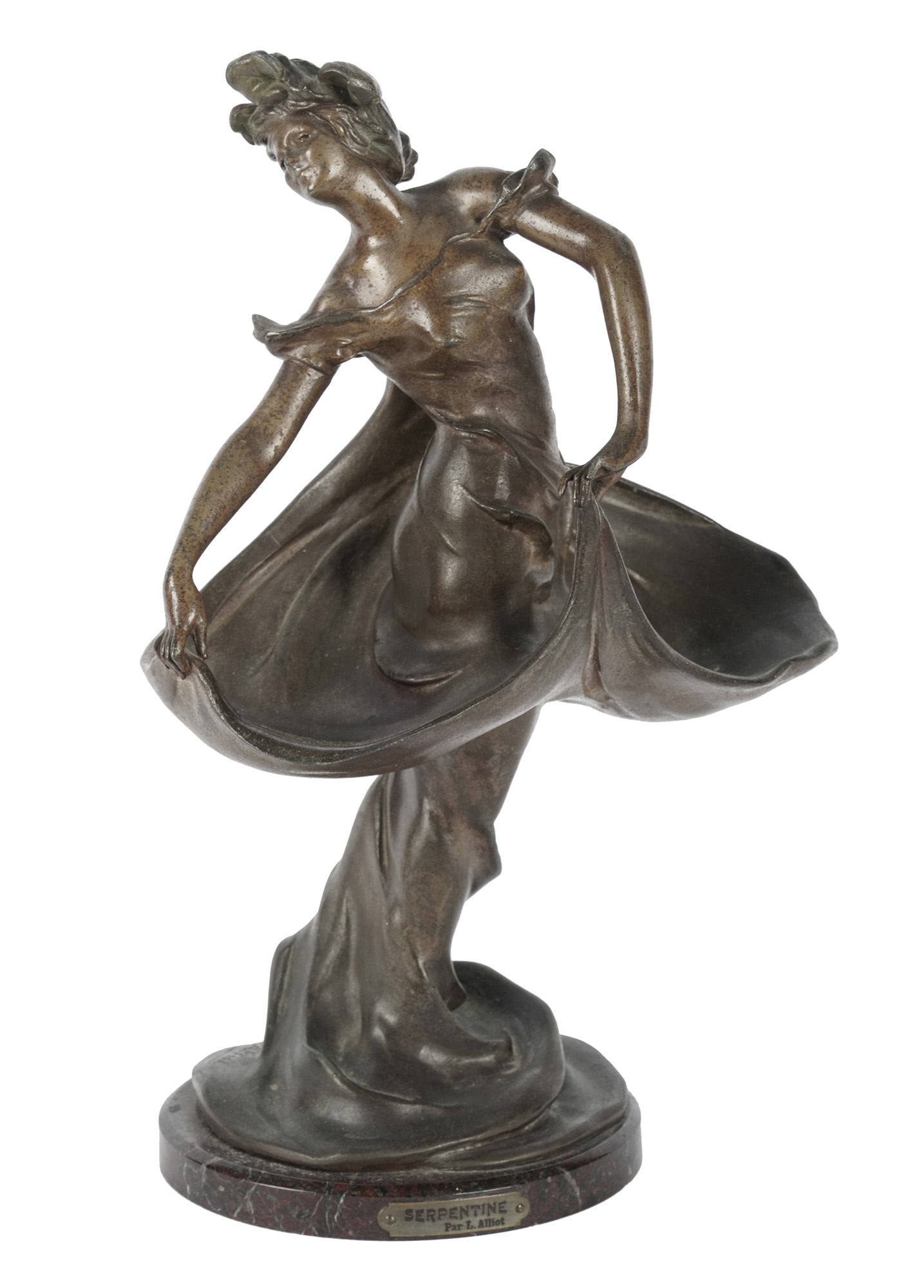 Bronzo su sottile basamento di marmo. cm 29x20x13. Firmata nello stampo ai piedi della figura. "Serpentine Par L. Alliot" inciso su placchetta metallica applicata al basamento. (1) Minimi difetti, altrimenti ottima conservazione.