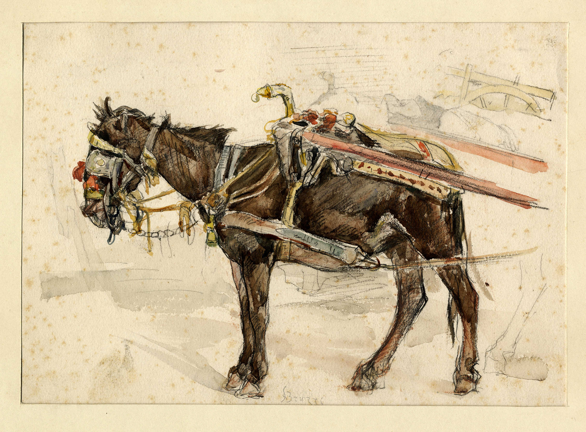 Stefano Bruzzi, Ciuco aggiogato. Acquerello, carboncino e matita su carta. mm...