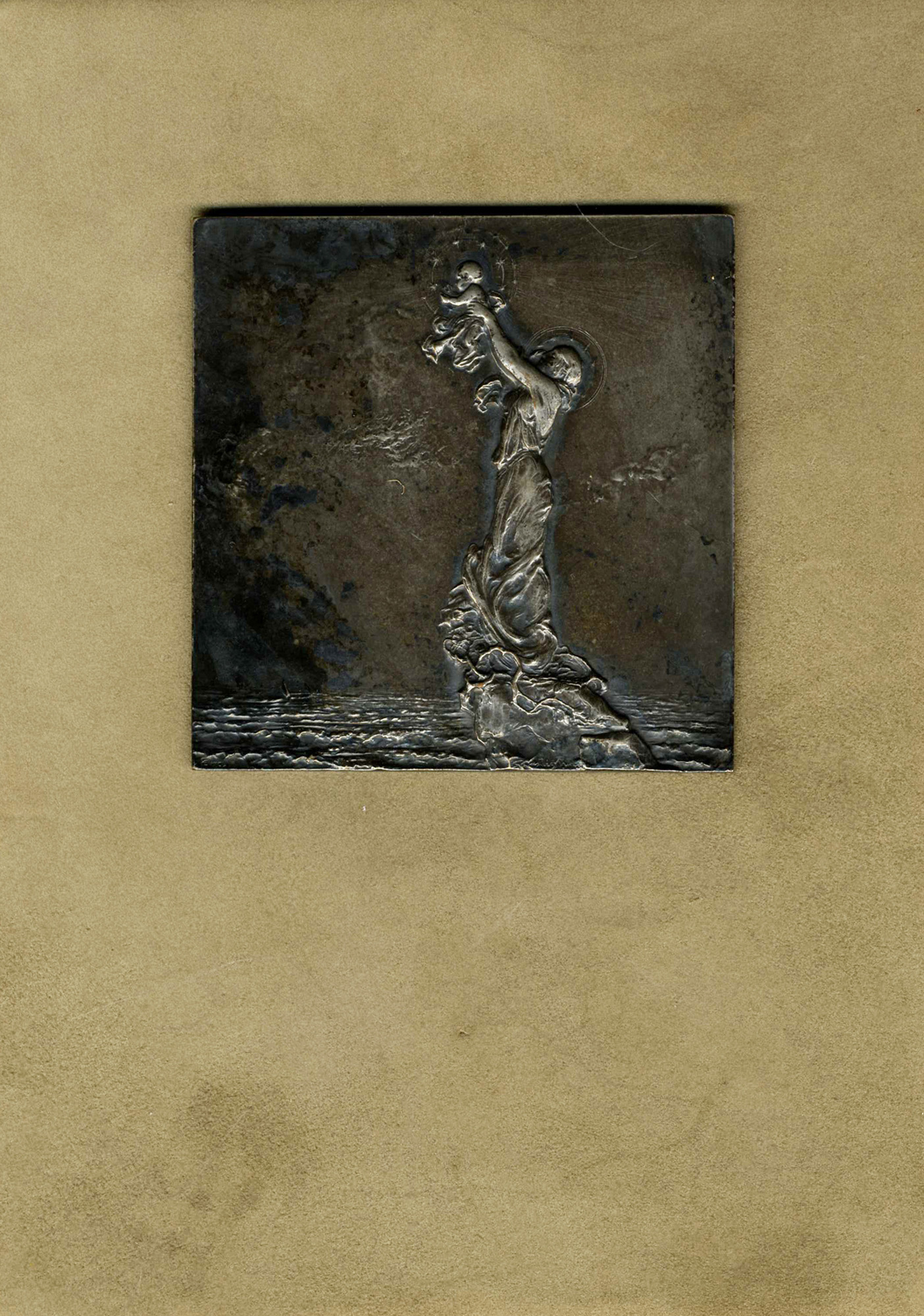 Bassorilievo in bronzo argentato. cm 8x8. Firma incisa in basso a destra. (1) Il bronzo è totalmente applicato a supporto in tessuto.