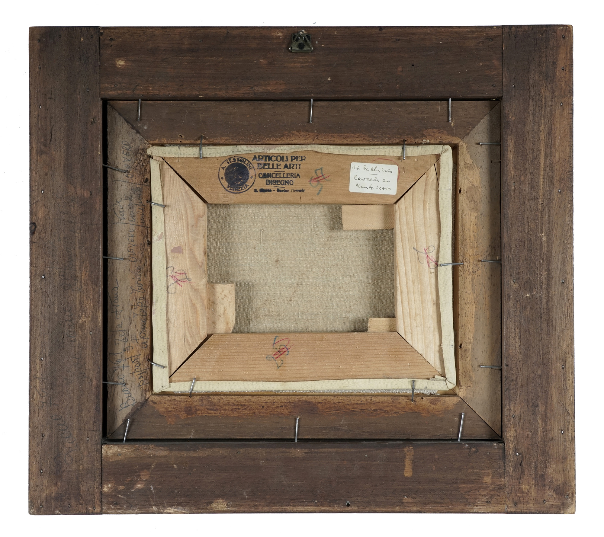 Olio su tela. cm 20,5x25,2. Firma in basso a destra. Al verso timbro ad inchiostro nero di "A. Testolini di Venezia-Articoli per Belle Arti" ed etichetta contente il nome dell'artista e il titolo applicata sul telaio. Opera archiviata con il numero 122/10/24 OT dalla Fondazione Giorgio e Isa De Chirico e accompagnata dal certificato di autenticità su fotografia. (1) In bella cornice lignea con vetro: cm 41x46.