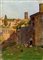 Nino Della Gatta, Paese. Olio su cartone. cm 34,8x25. Firmato in basso a...