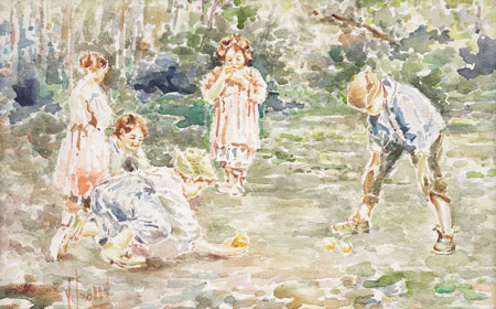 IROLLI VINCENZO Napoli 30/09/1860 - 27/11/1942Gioco di bimbiacquerello su...