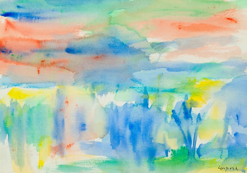 Antonio Corpora (Tunisi 1909 - 2004) SENZA TITOLO Acquerello su cartone applicato su tela, cm. 36x51 Firmato in basso a destra.