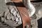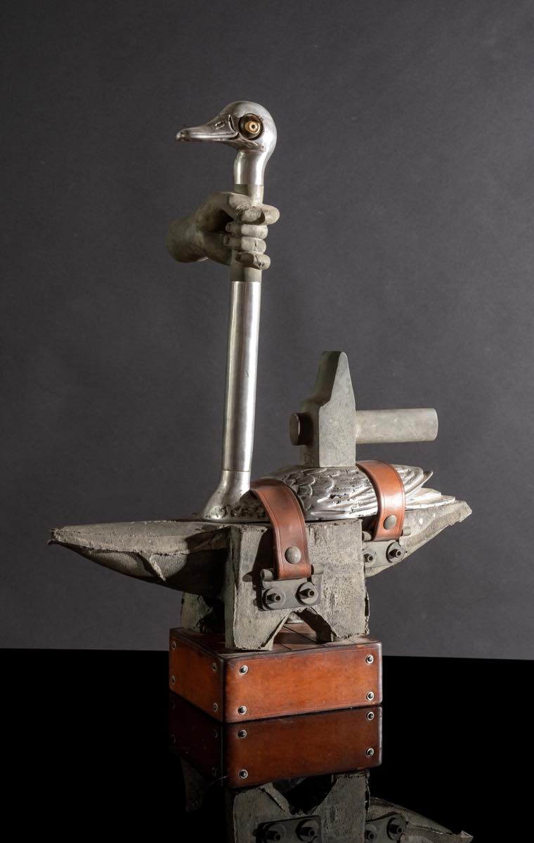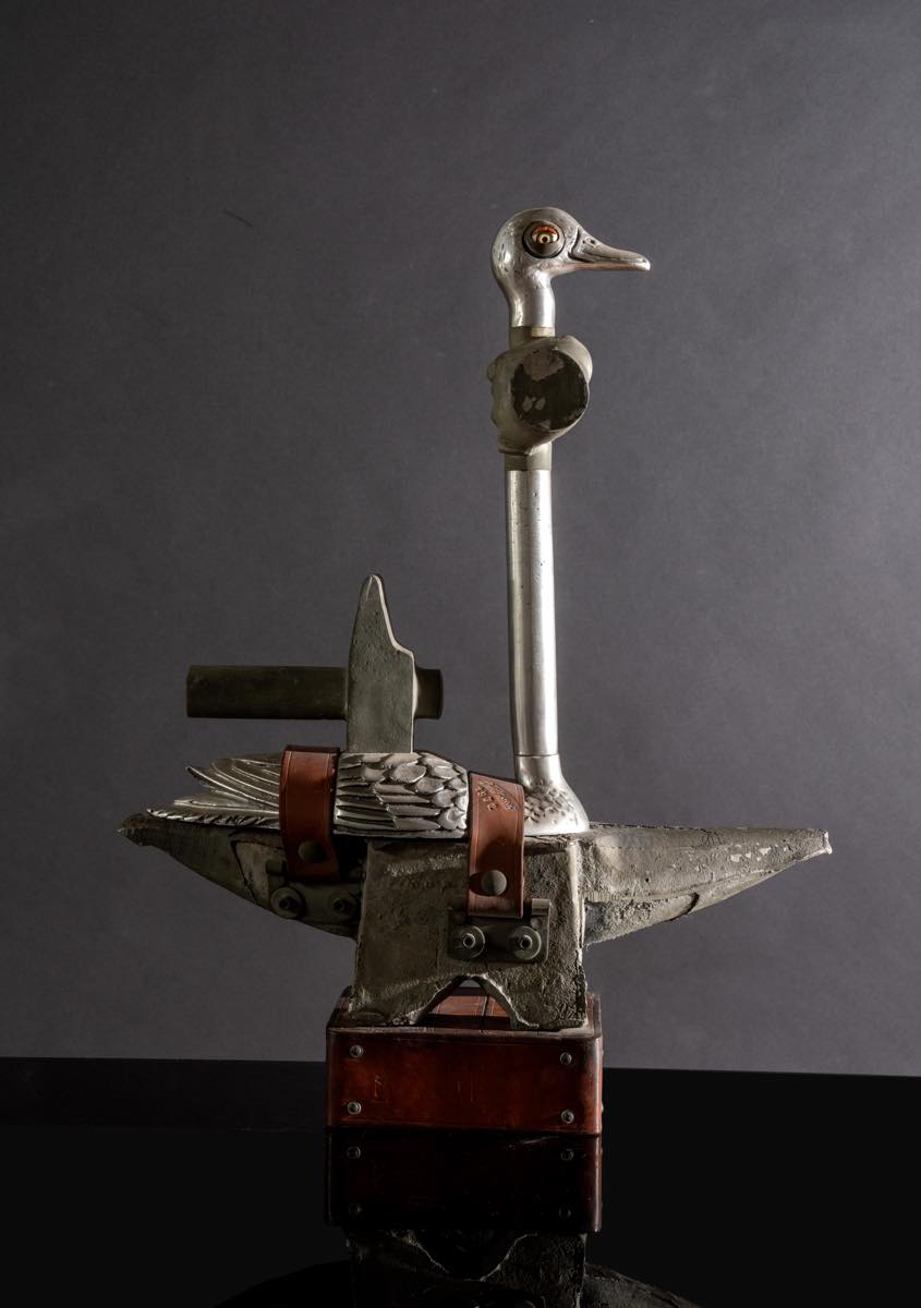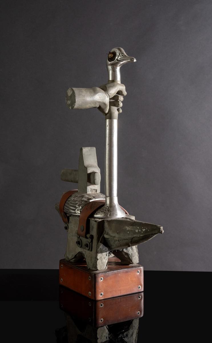 Scultura in materiali misti, reca incisione nella parte in pelle con firma e data, H cm 68x55x23 - Note: Provenienza: Importante Collezione Privata – Bologna.