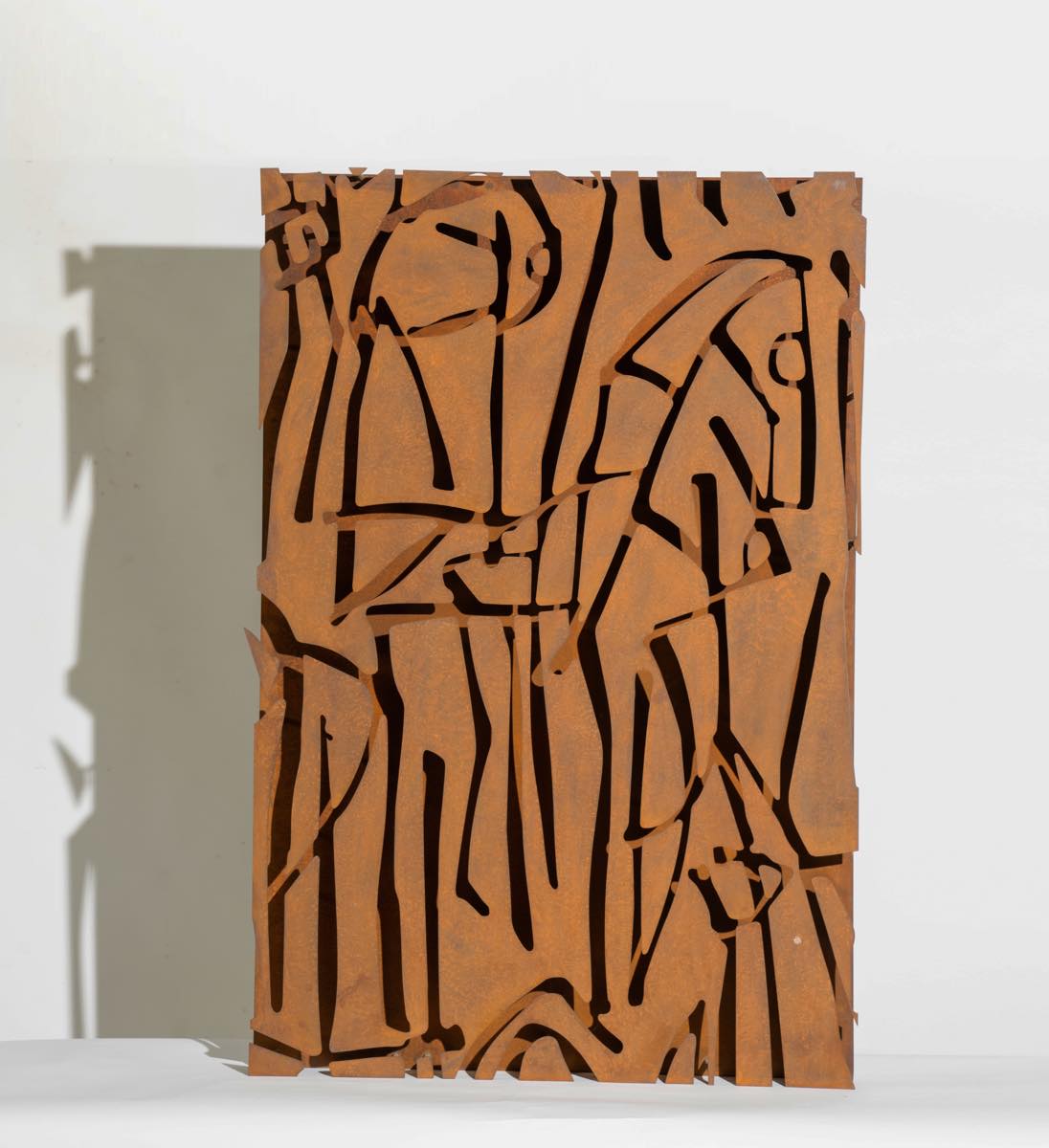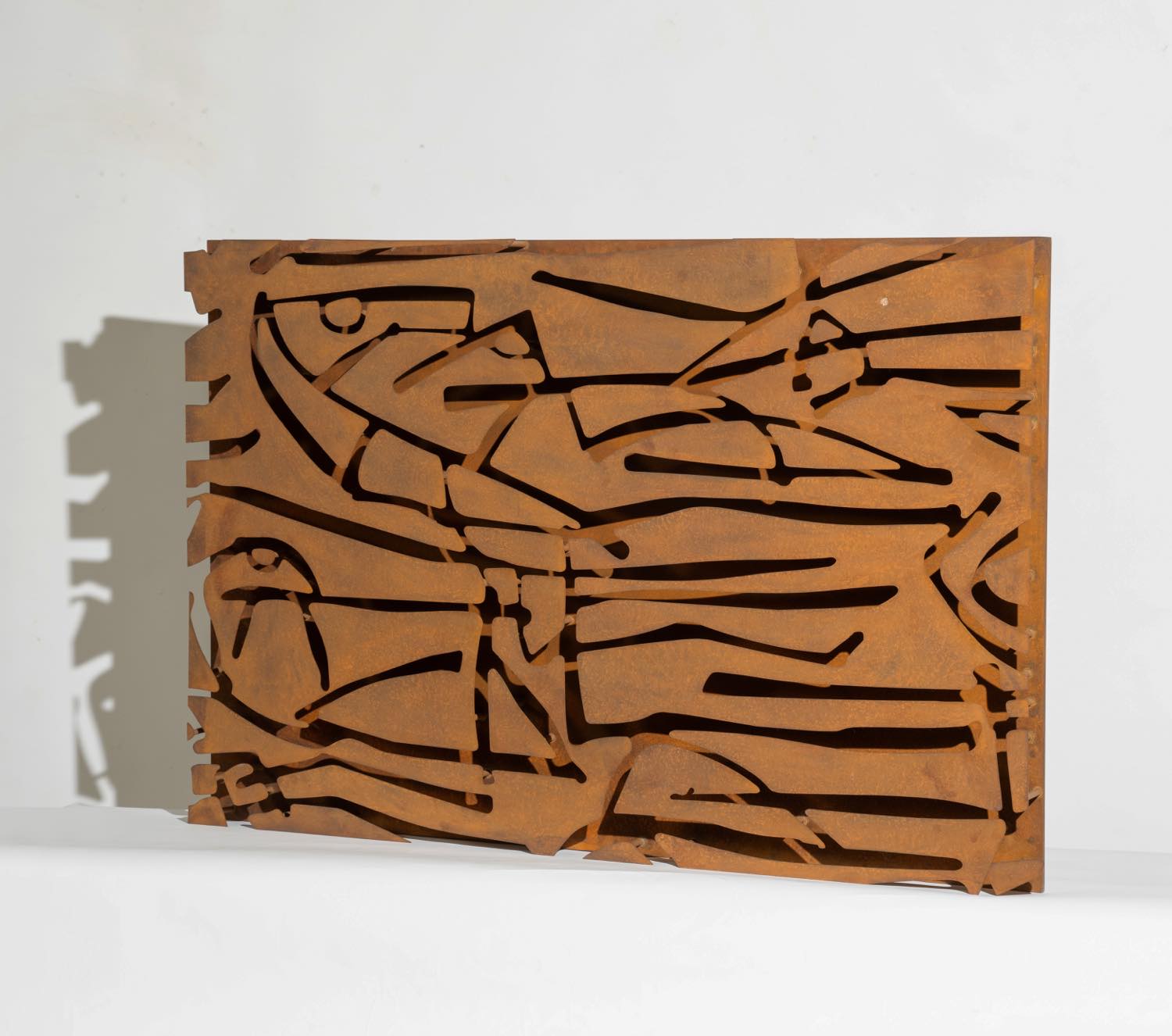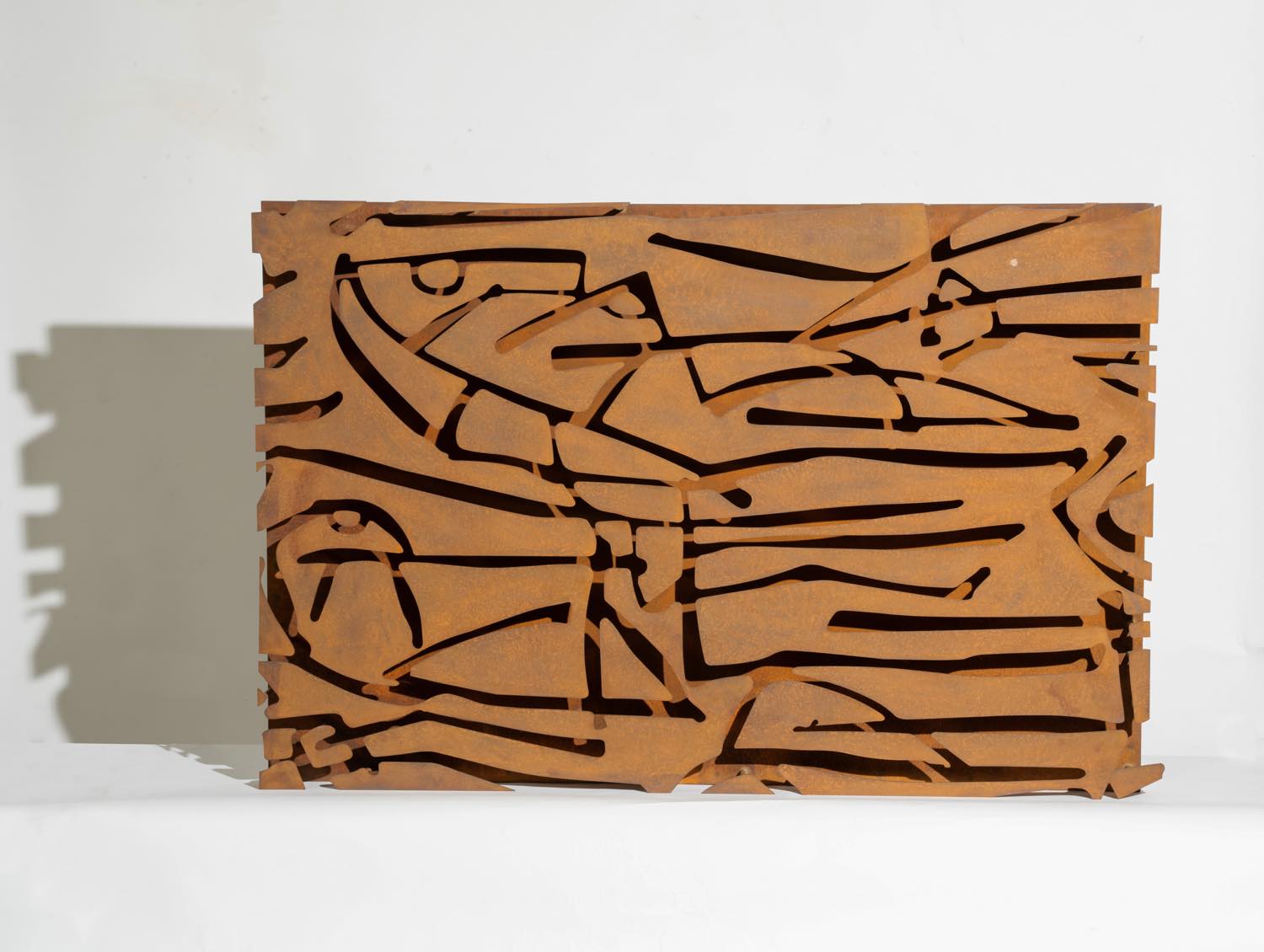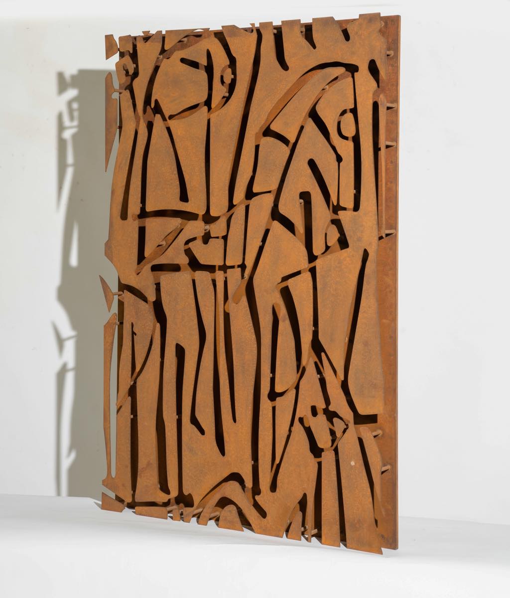 Scultura in acciaio corten, reca al retro simbolo grafico, firma dell’artista e data, H cm 150x100x9 - Note: Provenienza: Importante Collezione Privata – Bologna.