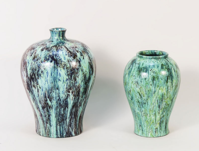 DUE VASI IN TERRACOTTA SMALTATA - TWO GLAZED TERRACOTTA VASES uno nei toni...