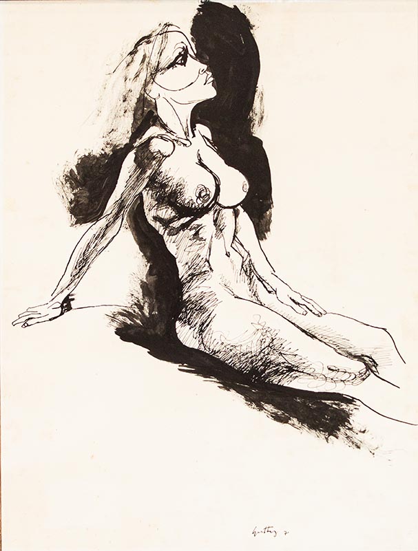 Renato Guttuso, China su carta, 70,5x50,2 cm, Nudo femminile, 1970; Firmato in basso a destra; Al retro timbro della Galleria d'Arte "La Tavolozza", Palermo 1972; Etichetta