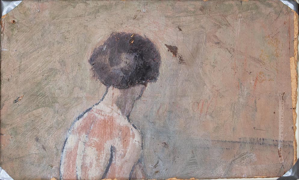 Renato Birolli, Olio su cartone, 18,5x28,5 cm, Paesaggio, 1928; Firmato e datato in basso a sinistra; Provenienza: Collezione privata, Milano; Certificato di autenticità su foto Archivio Renato Birolli n. 1928-11; Al retro è presente un altro dipinto raffigurante una figura di donna di spalle