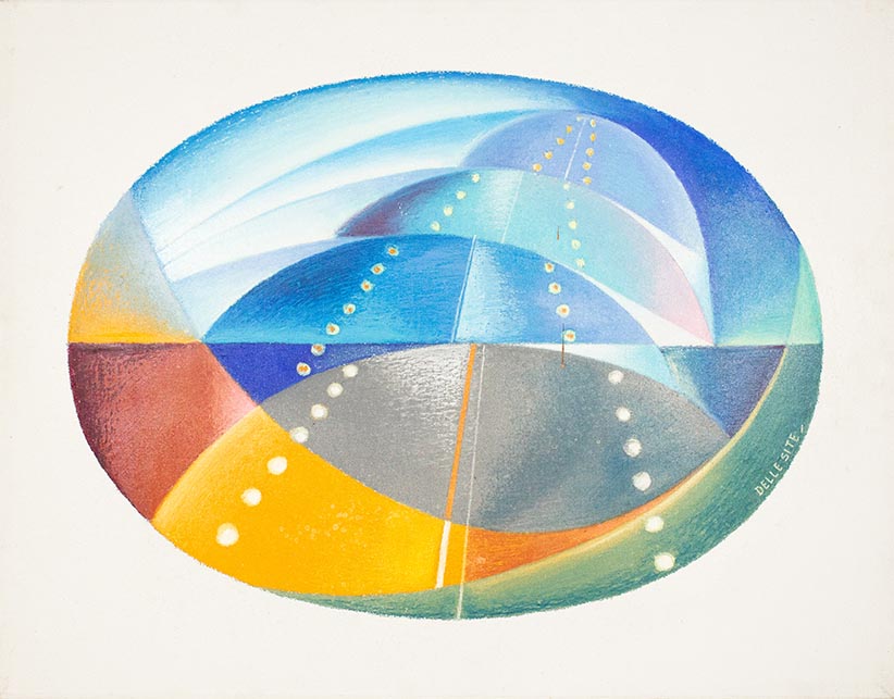 Mino Delle Site, Cromolio su tela, 53x67 cm, Forma-Senso atterraggio, 1976; Pubblicato sul Catalogo Generale pag. 95 (Electa edizione); Timbro dell'Archivio sul retro