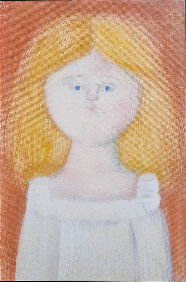 Antonio Bueno, Tecnica mista su masonite, 30x20 cm, Ragazza, 1979; Archivio su foto