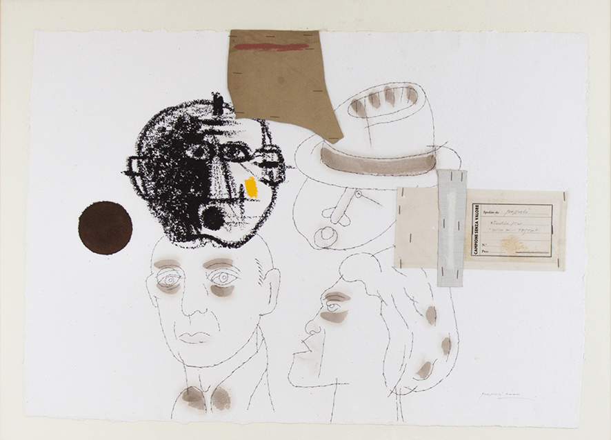 Concetto Pozzati, Tecnica mista su cartoncino, 56x77 cm, Studio, 2000; Firma e anno in basso a destra