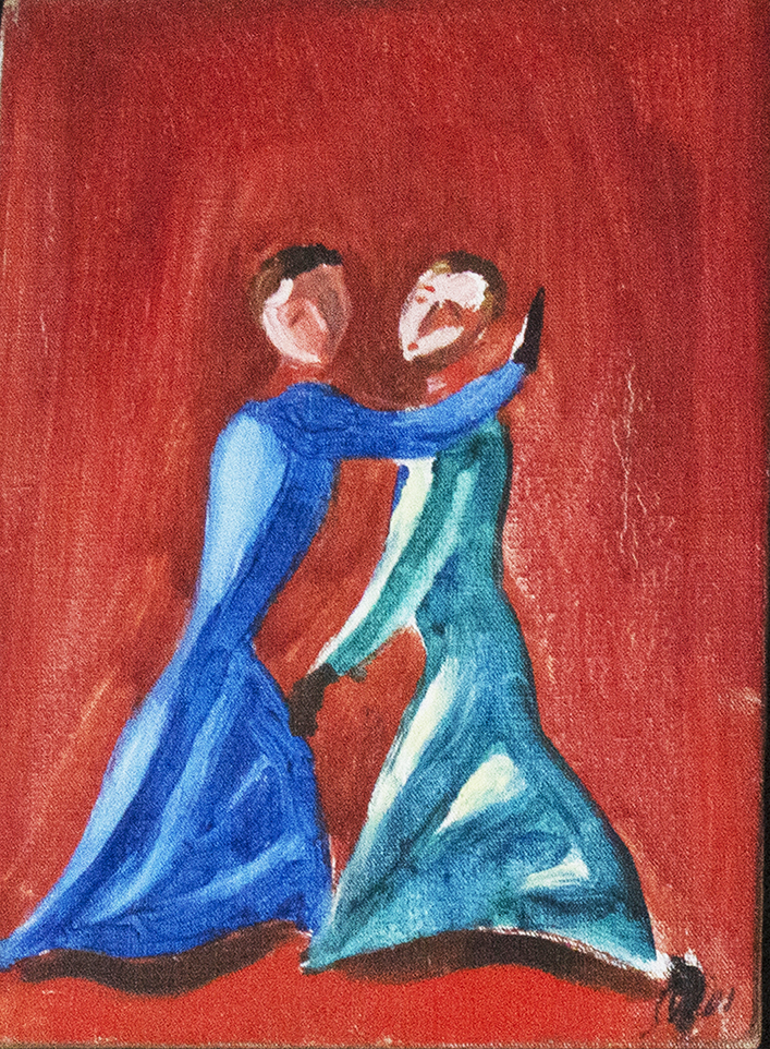 Virgilio Guidi, Olio su tela, 24x18 cm, Incontro, 1971; Provenienza Casa d'Aste