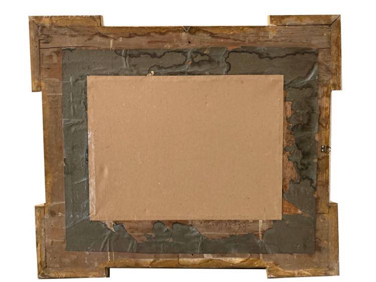 Specchiera in legno dorato. Specchio al mercurio. Luce cm. 19x28. Ingombro cm. 41x50.