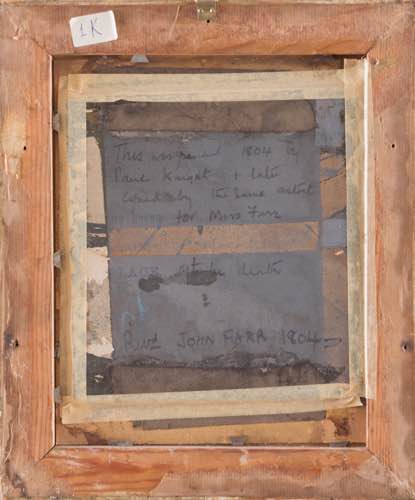 Paul Knight (Inghilterra, XIX secolo). Volto maschile, 1804. Olio su cartone. Olio su cartone. Firmato e datato in basso a destra P. Knight 04. Al verso reca iscrizione datata 1804 a firma John Farr. Cm. 19x15. Entro cornice.