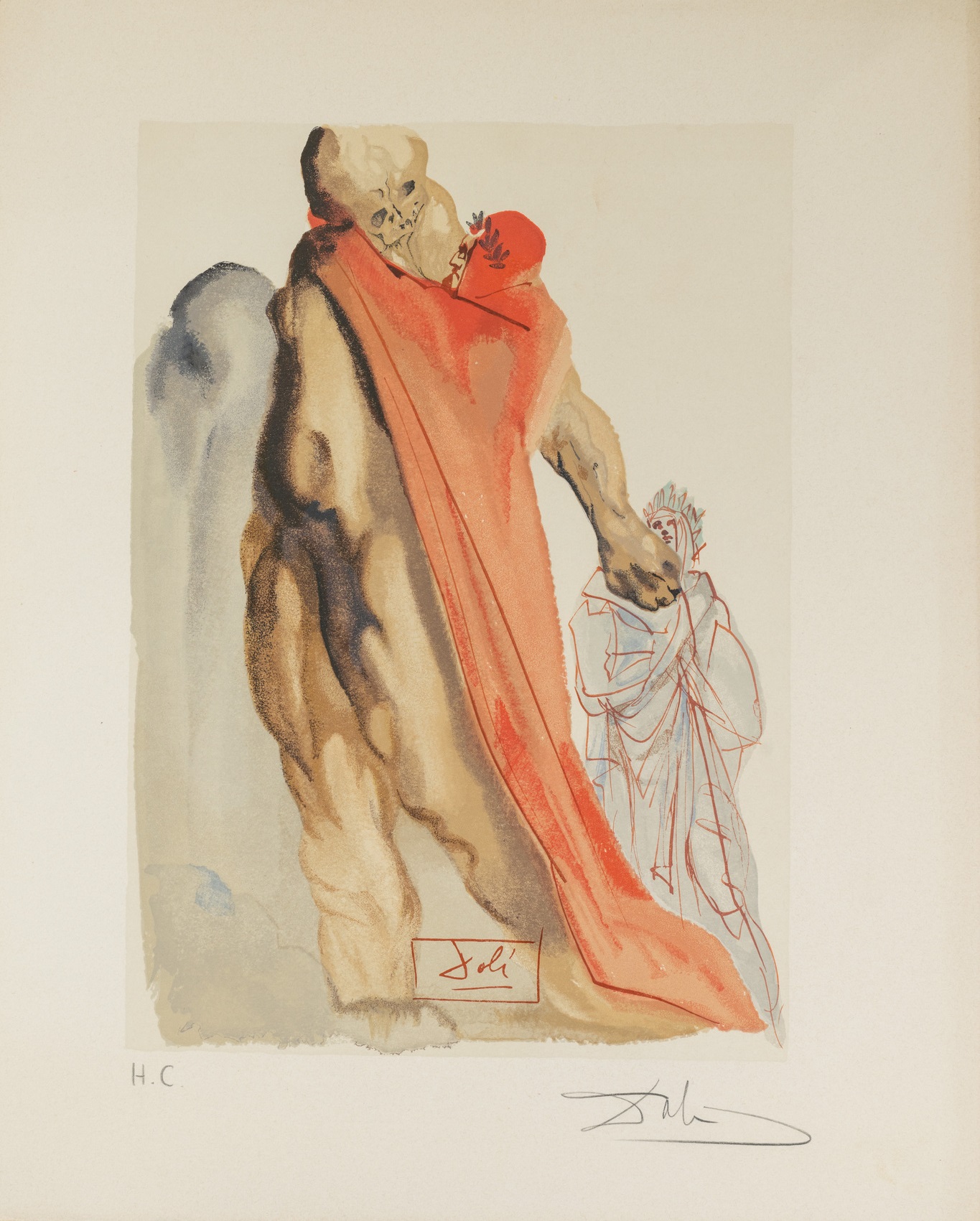 Salvador Dalì (Figueres 1904 - 1989). Il rimprovero di Virgilio. Litografia a colori su carta. Esemplare H.C. Firmato e numerato a matita al margine inferiore. Lievi difetti. Cm. 33x26,5.