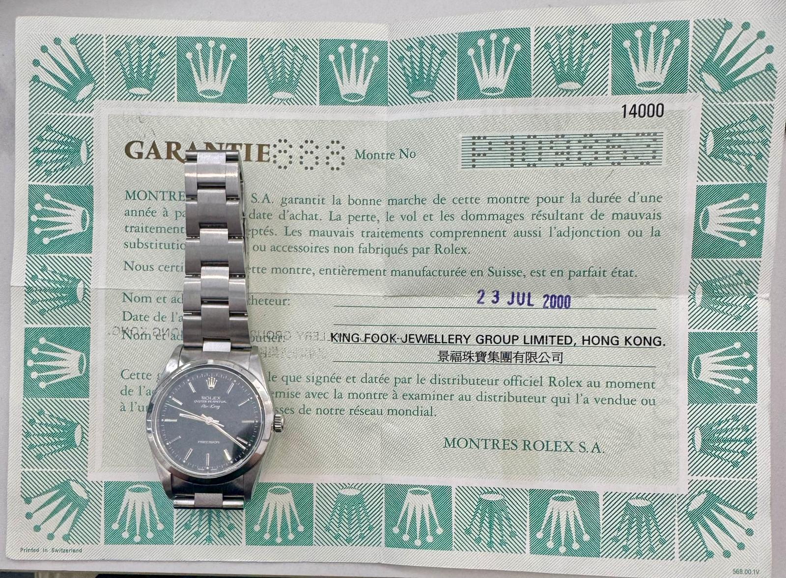 Marca Rolex Modello (Orologio) Air King Numero di referenza 14000 Carica Automatico Materiale della cassa Acciaio Materiale cinturino Acciaio Anno di produzione 2001 Condizione Usato (Ottimo) L'articolo presenta segni di usura lievi, come ad esempio graffi leggeri, ma non percepibili al tatto. Corredo documenti originali, no box Carica Automatico Cassa Materiale della cassa Acciaio Diametro 34 mm Impermeabile 10 ATM Materiale lunetta Acciaio Vetro Vetro zaffiro Quadrante Nero Numeri sul quadrante Senza numeri Cinturino Materiale cinturino Acciaio Colore cinturino Acciaio Chiusura Déployante Materiale chiusura Acciaio