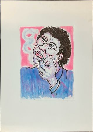 Giuseppe Migneco "Fumatore" acquaforte e acquatinta a colori (lastra cm 39,5x29