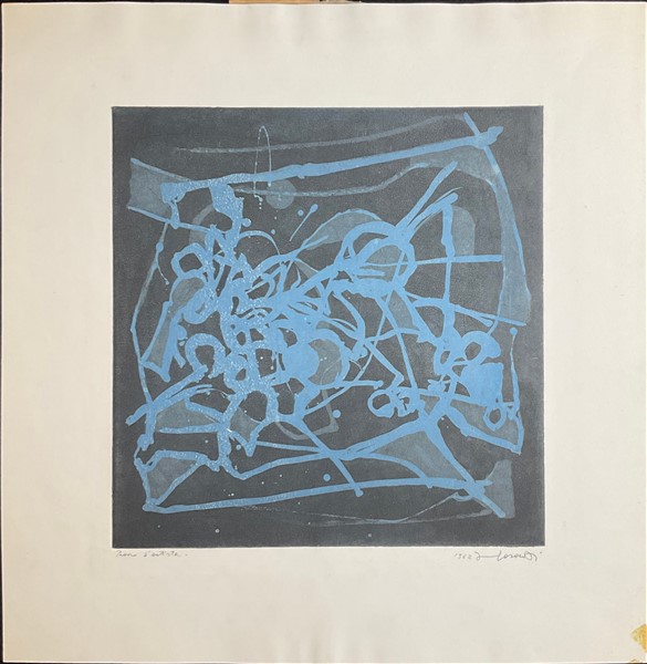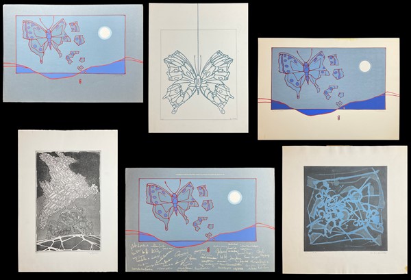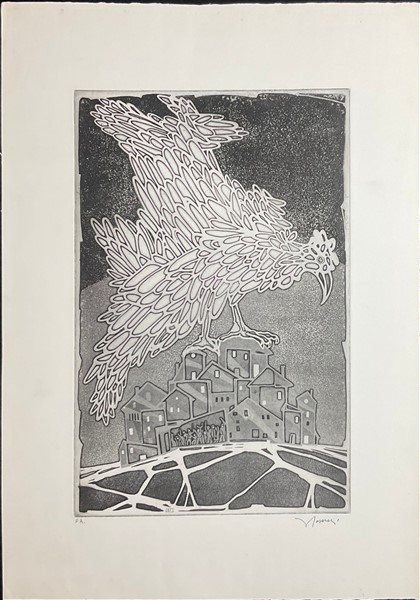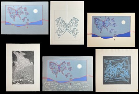 Lotto composto da quattro tra litografie e incisioni, un disegno a tecnica mista e un manifesto litografico, di soggetti e misure diverse