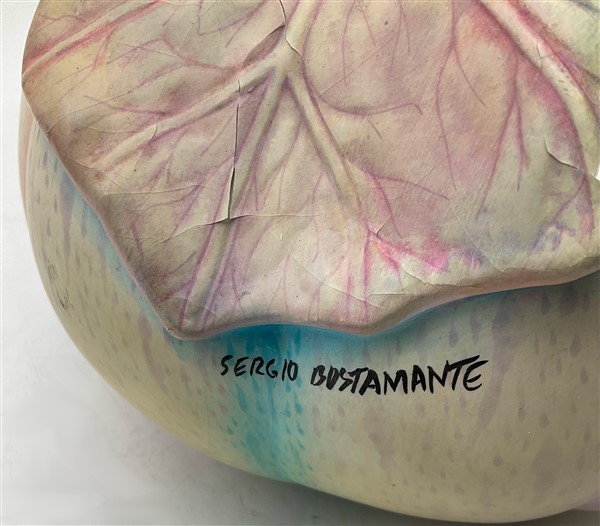 Sergio Bustamante "Senza titolo" scultura in terracotta dipinta, con frutto e t