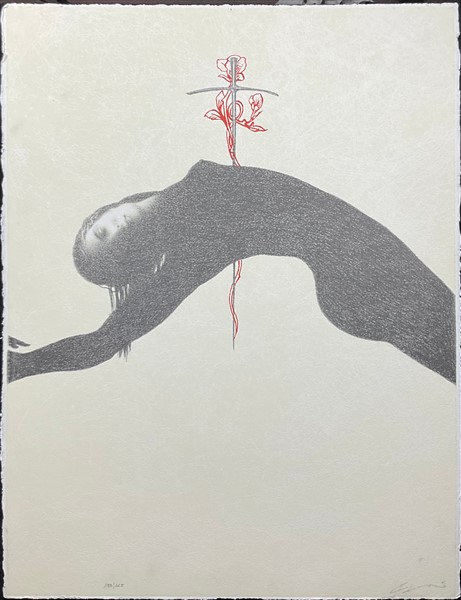 Omar Galliani "Nuovi santi - Nuovi Fiori: Opera 2 Rosso" tecnica mista litograf