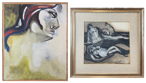 Lot 484 | Firma indecifrata Lotto composto da un olio su tela e una tecnica mista su car