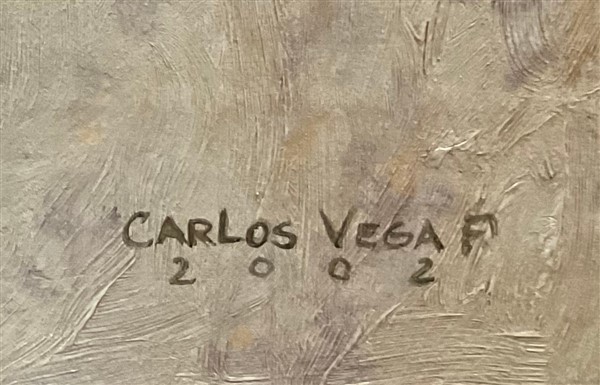 Lot 489 | Carlos Vega "Senza titolo" 2002 olio su tela applicata su compensato cm 60x90 fi
