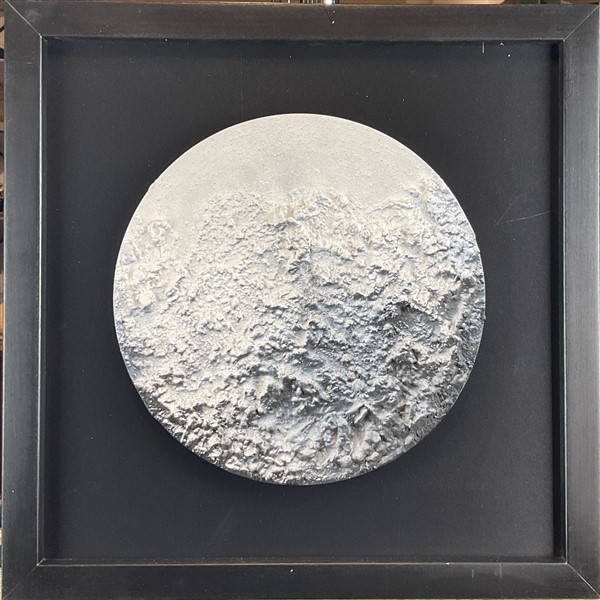 Paola Romano "Luna bianca" 2020 tecnica mista materica su compensato d cm 30. In