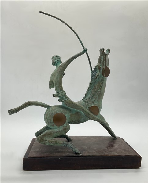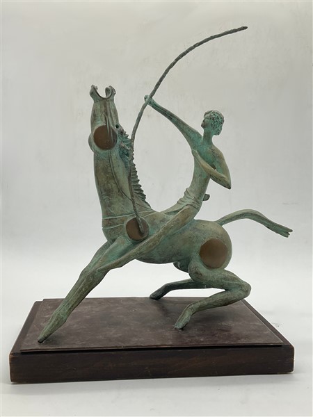 Augusto conti "Giovane arciere a cavallo" scultura multiplo in bronzo su base i