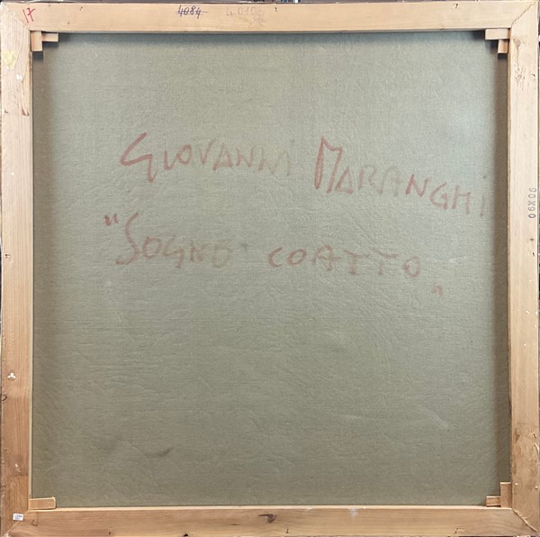 GIOVANNI MARANGHI "Sogno coatto" olio su tela cm 90x90 firmato e datato in bass
