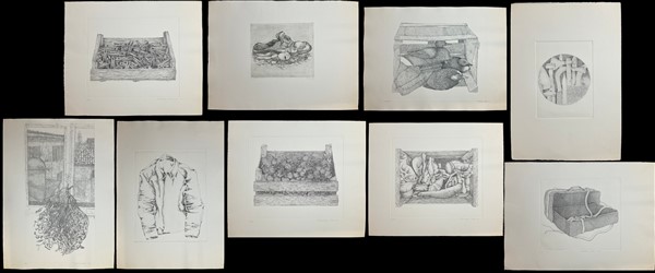 Mariarosa Mutti Lotto composto da nove acqueforti di diverso soggetto e misura m