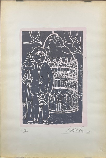 firmata, datata e numerata 36/100 in basso a matita. In cornice (difetti)