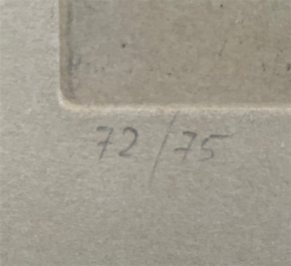 firmata e numerata 72/75 in basso a matita. Dall'Album "Tout près de Marino" edito da XX Siecle, Parigi e Léon Amiel, New York, tav. IX. In cornice (difetti)