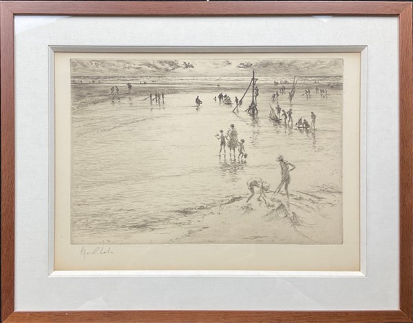 Edgar Chahine "Marée basse (Villers sur Mer)" 1930 puntasecca lastra cm 21,8x31,