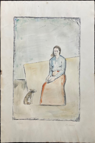 Carlo Carrà "Solitudine" 1944 litografia acquerellata cm 50x32,5 firmata e numer