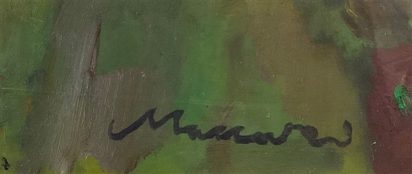 Mino Maccari "La sciarpa rossa" 1987 olio su compensato cm 34x68 firmato in bass