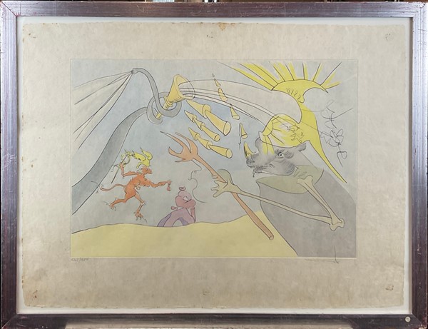 Salvador Dalì "Senza titolo" puntasecca e acquatinta su carta giappone (lastra
