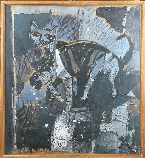 Giorgio Celiberti "Composizione con gatti" 1959 tempera su carta applicata su te