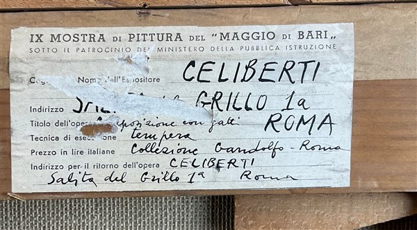 firmato, titolato, iscritto al retro ed etichetta IX Mostra di pittura del maggio di Bari. In cornice (lievi difetti)