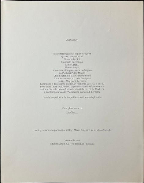firmate e numerate 30/60 in basso a matita, Edizioni Larus, Bergamo