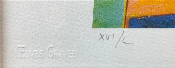 firmata e numerata XVI/L in basso a matita, timbro a secco l'Euvre Gravèe in basso a sinistra. In cornice