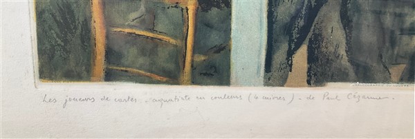 Jacques Villon - (After) Paul Cézanne "Le Joueurs de Cartes" acquatinta a color