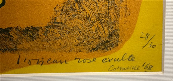 Guillaume Corneille "L'Oiseau Rose Exulte" 1968 litografia a colori cm 65x50 fir