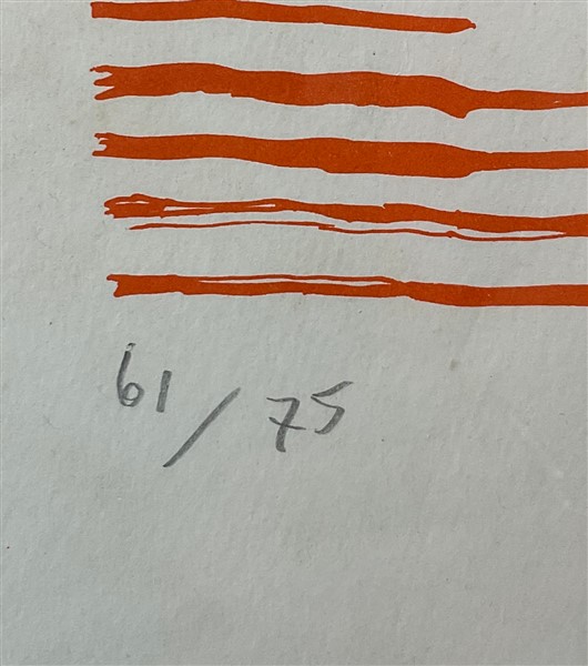 firmata e numerata 61/75 in basso a matita, timbro a secco 2RC in basso a sinistra. Edizione della Stamperia 2RC, Roma e la Galleria Marlborough, Roma. In cornice (lievi difetti)