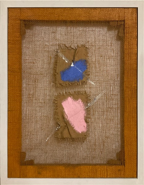 Salvatore Emblema "Senza titolo" 2005 terre colorate e cuciture su tela di juta