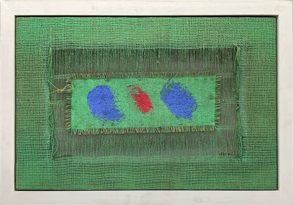 Salvatore Emblema "Senza titolo" 2005 terre colorate e cuciture su tela di juta