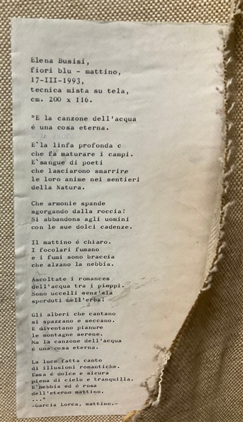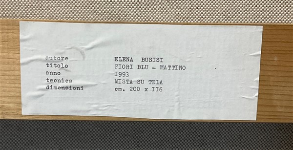 Elena Busisi "Fiori blu - mattino" 1993 tecnica mista su tela cm 200x116 firmato