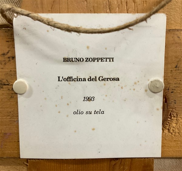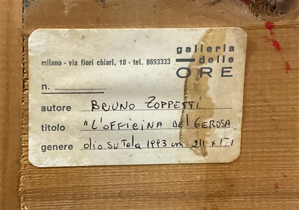 Bruno Zoppetti "L'officina del Gerosa" 1993 olio su tela cm 211x171 firmato in b