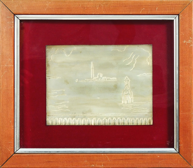 VIRGILIO GUIDI (1891-1984) San Giorgio - St. George multiplo su lastra d'argento 900 - multiple on silver es 13/31, in cornice, al verso reca cartiglio Il Capricorno, Venezia - With label on reverse cm 18x23