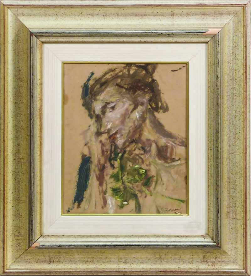 ENZO FARAONI RITRATTO FEMMINILE - FEMALE PORTRAIT bozzetto ad olio su cartoncino applicato a tavoletta - oil sketch on carboard laid on panel, firmato e datato 1992, in cornice cm 30x25