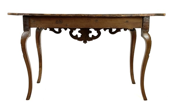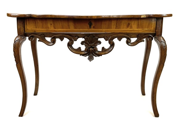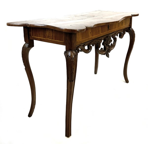 Antica console veneta in noce con piano sagomato e un cassetto nella fascia las